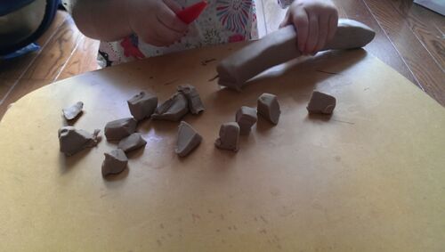 今までの娘の粘土遊びの様子 2歳 小麦粉粘土でやりたい放題 油粘土で型抜き遊び(写真撮り忘れた。。。悔しい。。。) 粘土は好きなようですが、片付けが面倒で1ヶ月に1回くらいのペースで遊ばせていました。 粘土を切って遊ぶ娘 3歳になり、ちょっと太めの…